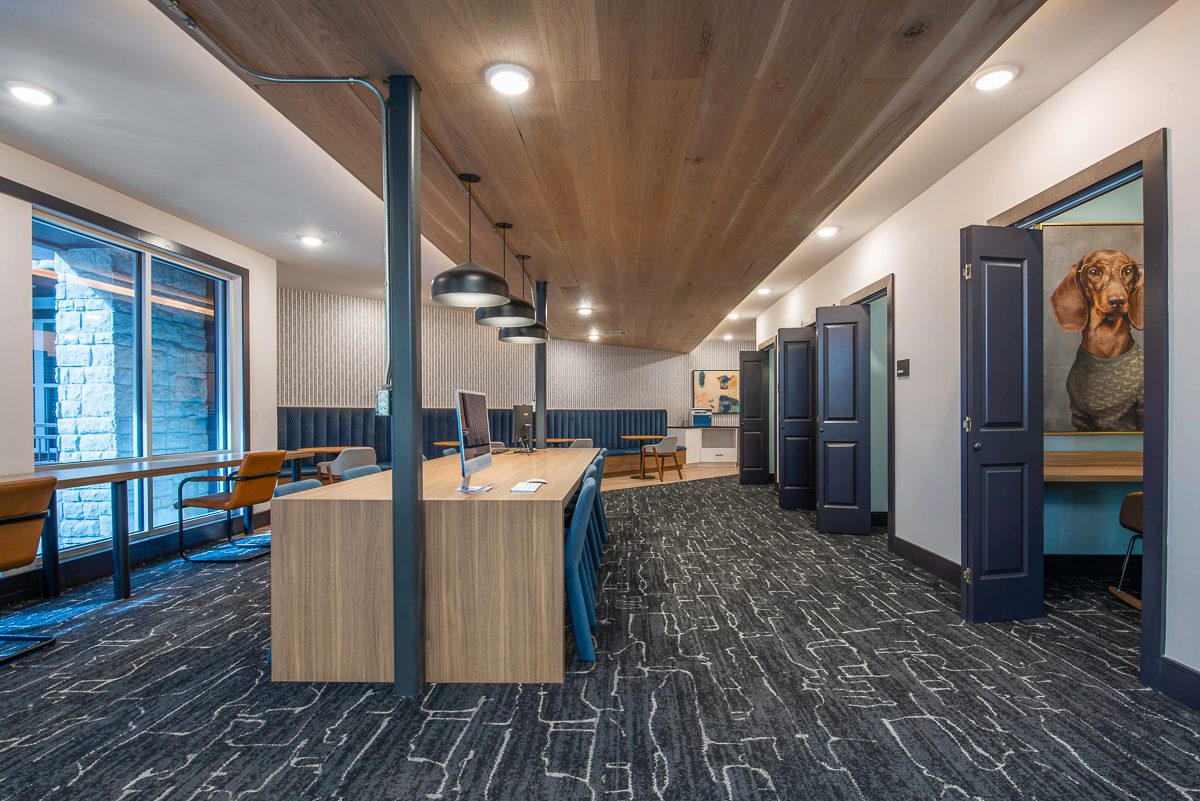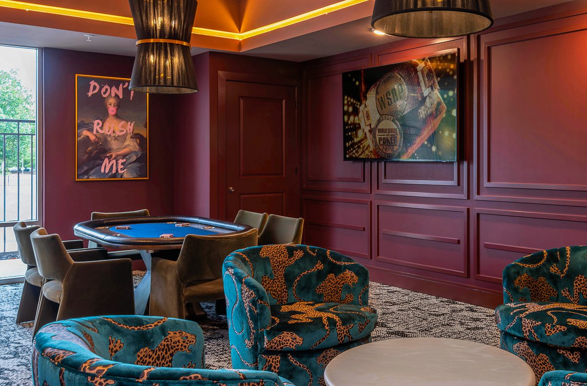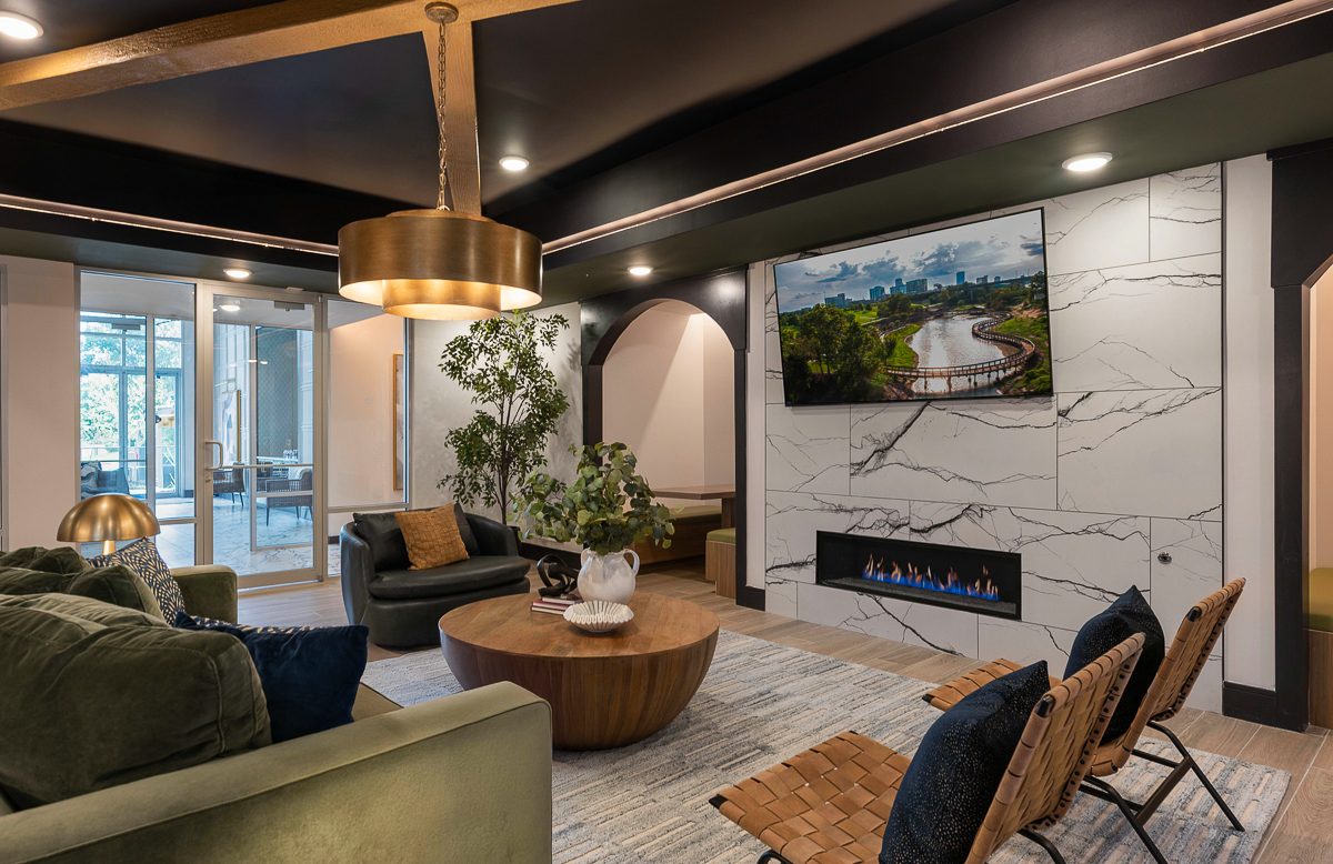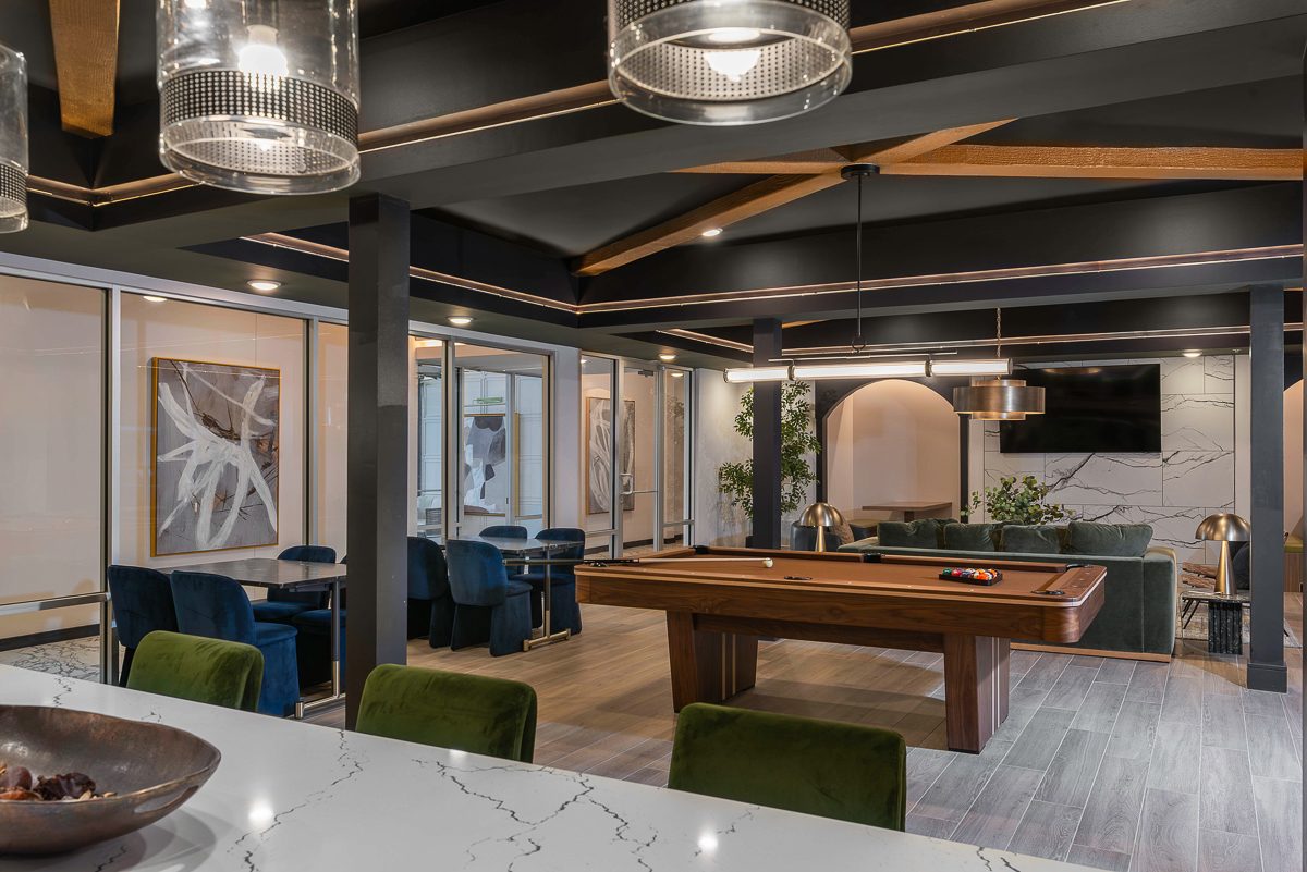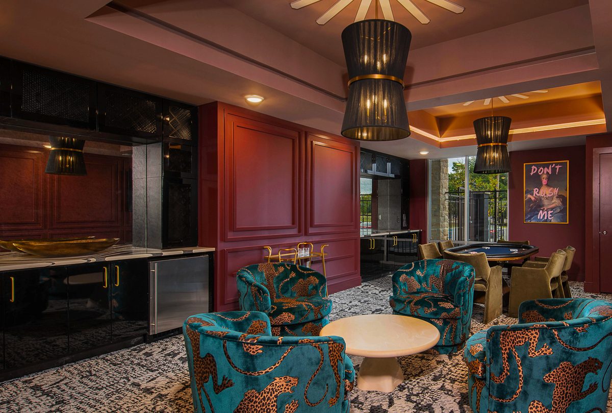 From the dramatic volume and welcome experience of the leasing lobby to the color-drenched richness of the wine & poker lounge, and from the fireside clubroom to the energized co-working hub, each space is curated to feel distinctive, refined, and effortlessly livable.